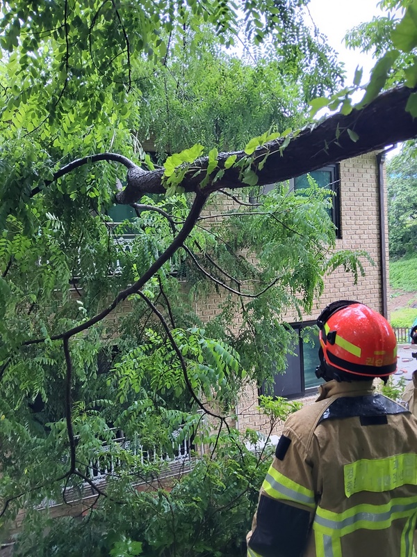 과천소방서는 “인명피해는 없다”라며 “ 산 쪽 나무가 단독주택 지붕위로 붕괴됐다”라고 밝혔다.