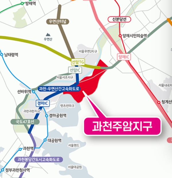 과천주암지구는 서울서초구와 양재천을 두고 붙어 있다. C2는 과천지구와 인접한 곳이다. 자료사진