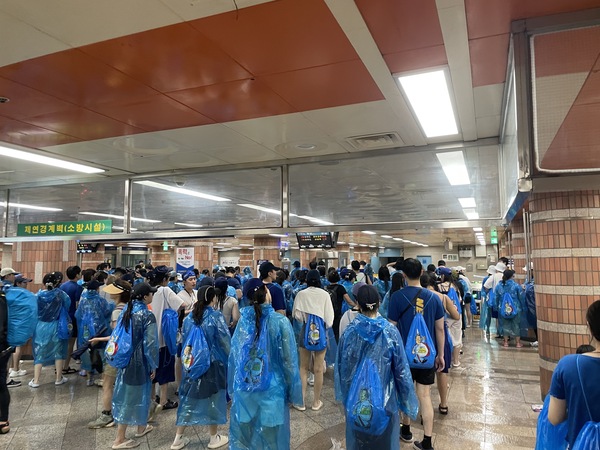 지난해 7월20일 싸이 흠뻑쇼 과천서울대공원 공연이 취소된 뒤 비옷차림의 관람객들이 지하철 역사에 몰려 있다. 자료사진=과천시