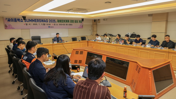 이번 ‘싸이 흠뻑쇼’는 3일간 하루 2만2천5백명, 총 6만7천5백명이 방문할 것으로 예상돼, 과천시는 공연 전후 시민 불편을 최소화하고 질서 유지를 위한 협업 체계 구축이 긴요하다고 판단해 이날 회의를 개최했다.