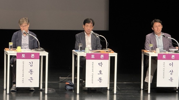 18일 과천미래포럼에서 박호동 과천도시공사사업계획처장(가운데)이 토론석에 앉아 있다. 사진=이슈게이트