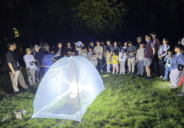 총 40가족이 참여한 이번 탐사는 불빛에 모여드는 다양한 곤충과 생물을 직접 찾아보고 관찰·기록하는 가족 참여형 활동으로 진행됐다. 참가자들은 큰광대노린재, 버들하늘소, 갈색여치, 딱정벌레류 등 수십 종의 곤충과 생물을 관찰한 뒤, 모든 개체를 다시 자연으로 돌려보내 생태계 보전에 동참했다.