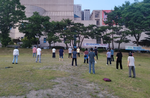 과천시민들이 최근 과천시민회관 옆 시민광장에서 체육활동을 하고 있다. 자료사진