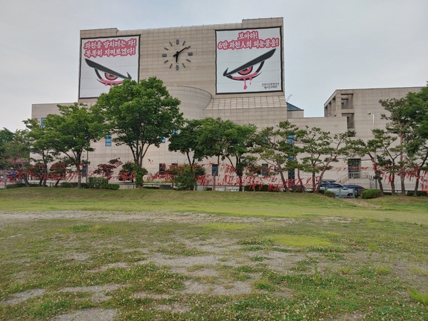 지난 20년8월 문재인 정부가 정부과천청사 유휴지에 주택공급을 발표하자 시민들이 반대 뜻을 담은 대형현수막을 과천시민회관 벽에 걸어두었다. 자료사진