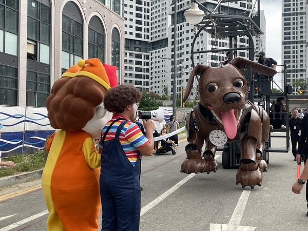 지난 6일 과천 갈현동 1차 사전행사 때 선보인 대형 강아지 인형 '로그'. 사진= 과천시