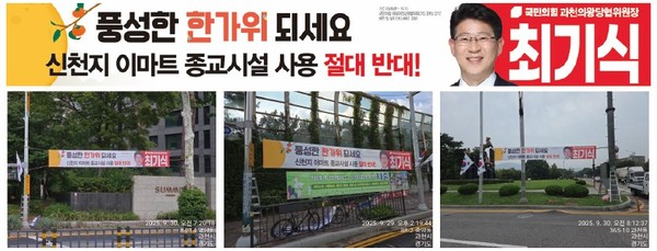 국민의힘 과천의왕당원협의회(위원장 최기식)가 추석을 맞아 중앙정치판 정쟁 대신 지역현안을 담은 현수막을 내걸어 눈길을 모은다.