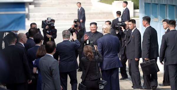 30일 오후 도널드 트럼프 미국 대통령과 김정은 북한 국무위원장이 판문점에서 깜짝 회동을 했다. 전날 트럼프 대통령이 트위터를 통해 제안을 했고 김정은 위원장이 받아들임으로써 이루어 졌다고 한다.