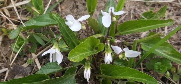 꽃말이 티 없이 맑고 맑은 “순진무구한 사랑”이라는 흰 제비꽃.
